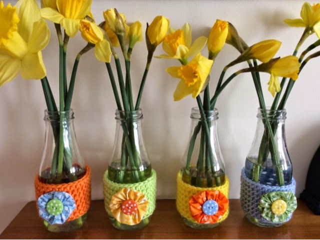 And that's all there is to it - mini ta-daaa - some spring vase cosies, cheery or what :)